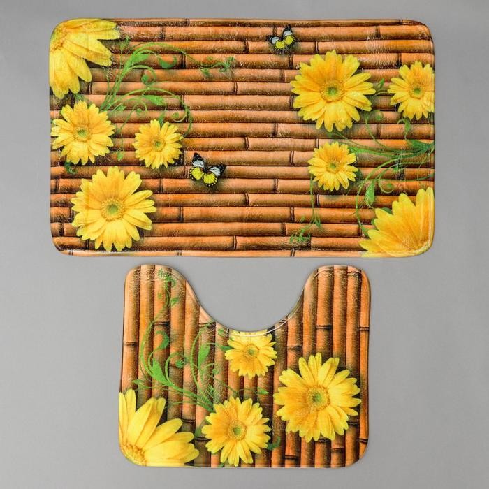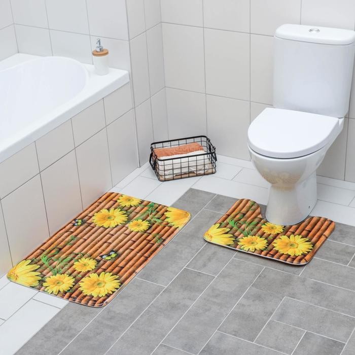 Набор ковриков для ванны и туалета Доляна «Лето» 2 шт: 79×49, 49×40 см