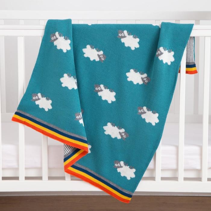 Плед вязаный Крошка Я «Овечки» цв. темно-зеленый, 80*100 см, 100% хлопок