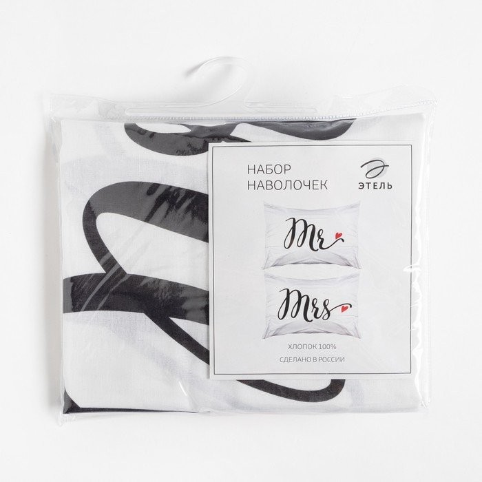 Комплект наволочек «Этель» Mr&Mrs 50×70 см — 2 шт, 100% хлопок, бязь