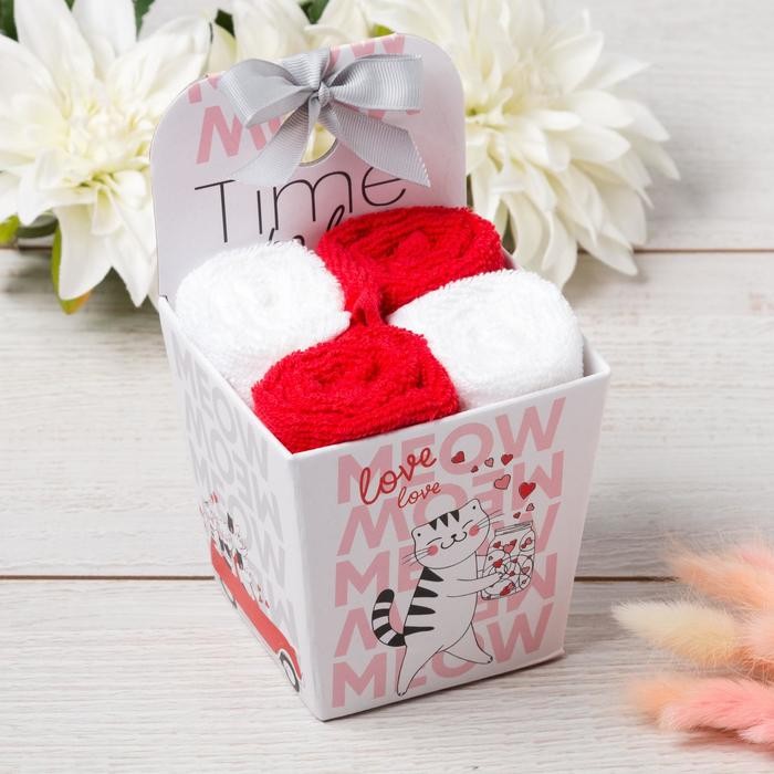 Набор декоративных махровых салфеток «Time to love» 30×30 см — 4 шт, 100% хлопок, 340 гр/м2