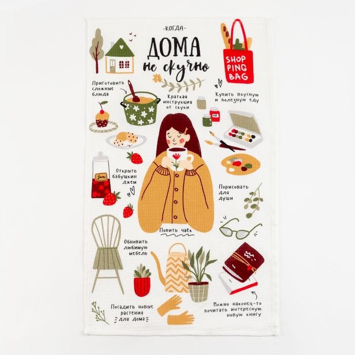 Полотенце кухонное Доляна «Дома не скучно» 35×60 см, 100% хл, 160г/м2