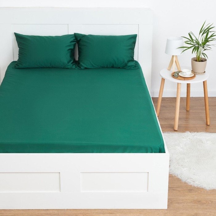 Простыня на резинке Этель 180*200*25 см, цв.изумрудный, 100% хлопок, мако-сатин, 125 г/м²