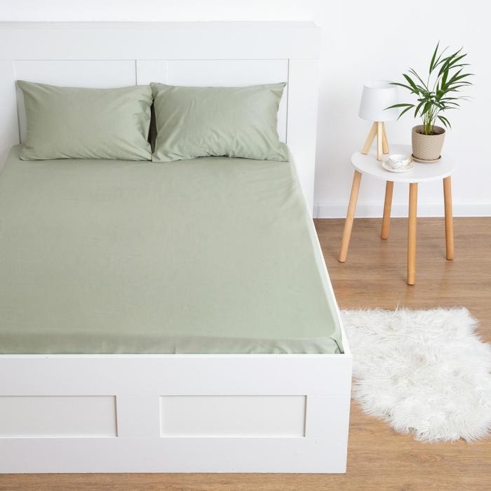 Простыня на резинке Этель 200*220*25 см, цв.оливковый, 100% хлопок, мако-сатин, 125 г/м²
