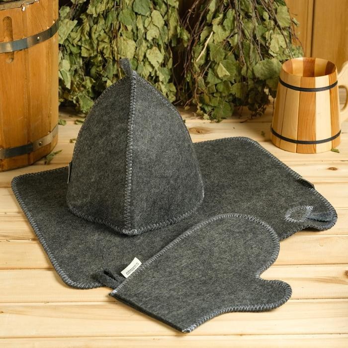 Для комфортного отдыха в парной возьмите с собой набор банных принадлежностей. Предметы из этого комплекта предохраняют тело от перегрева и являются средствами индивидуального пользования. Влажные изделия рекомендуется сушить в расправленном виде на горизонтальной поверхности. Принадлежности из войлока и фетра стирайте вручную при температуре воды 30 °C.