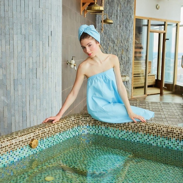 Набор для бани Spa day жен.парео 80×150±4 см, чалма, 100% хл., ваф.полотно, голубой